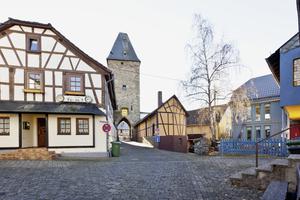„Sloss zu alden Wylennauwe und dal“ (1370) werden von einem gemeinsamen, an der Burg endenden Hauptweg durchzogen und durch weitere Sackgassen erschlossen. Ihre ehemaligen Namen lauteten schlicht Unter- und Obergasse (Vor der Stadtmauer, Vor dem Turm) sowie Hintergasse (Am Stadttor). Die Grenze zwischen den beiden Siedlungsräumen wird durch den über dem Hauptweg stehenden Torturm aus der Zeit um 1340 und durch die anschließende und in Resten erhaltene Wehrmauer, welche über den Steilhang nach der Burg verläuft, angezeigt. Die an der gegenüberliegenden Turmseite ansetzende Binnengrenze klingt im bogenförmigen Außenzug des durch Terrassierung hoch gelegenen Grundstückes Am Stadttor 2 nach. Der Verlauf von Altweilnaus Außenmauer zeichnet sich an den nördlichen Grundstücksgrenzen der Anwesen Vor dem Turm 1 und Nrn. 3, 5 zunächst deutlich ab und ist materiell gesichert durch den bei Haus Nr. 7 aus der Mauer vortretender Rest eines Schalenturmes. Jenseits des ehemals mit einer Pforte versehenen Stadteinganges hingegen treten die Spuren des Mauerzuges weitaus schwächer auf. Mit ihm in Verbindung gebracht werden können zum einen die (in Stein hochgezogene) Nordwand des Rathauses (Am Rathaus 4) und zum anderen eine Bebauungslinie, der die markanten Haussockel der Anwesen Vor der Stadtmauer 2, 6, 8 folgen. Um 1600 hatten die Altweilnauer Befestigungsanlagen ihren fortifikatorischen Zweck längst überlebt. Die Außenmauer wurde partiell in anderweitige Bebauung genommen, blieb als geschlossene Form jedoch bis ins frühe 18. Jahrhundert hinein bestehen. 1711 werden erstmals einige für den Viehtrieb vorgenomme Durchbrüche festgestellt.