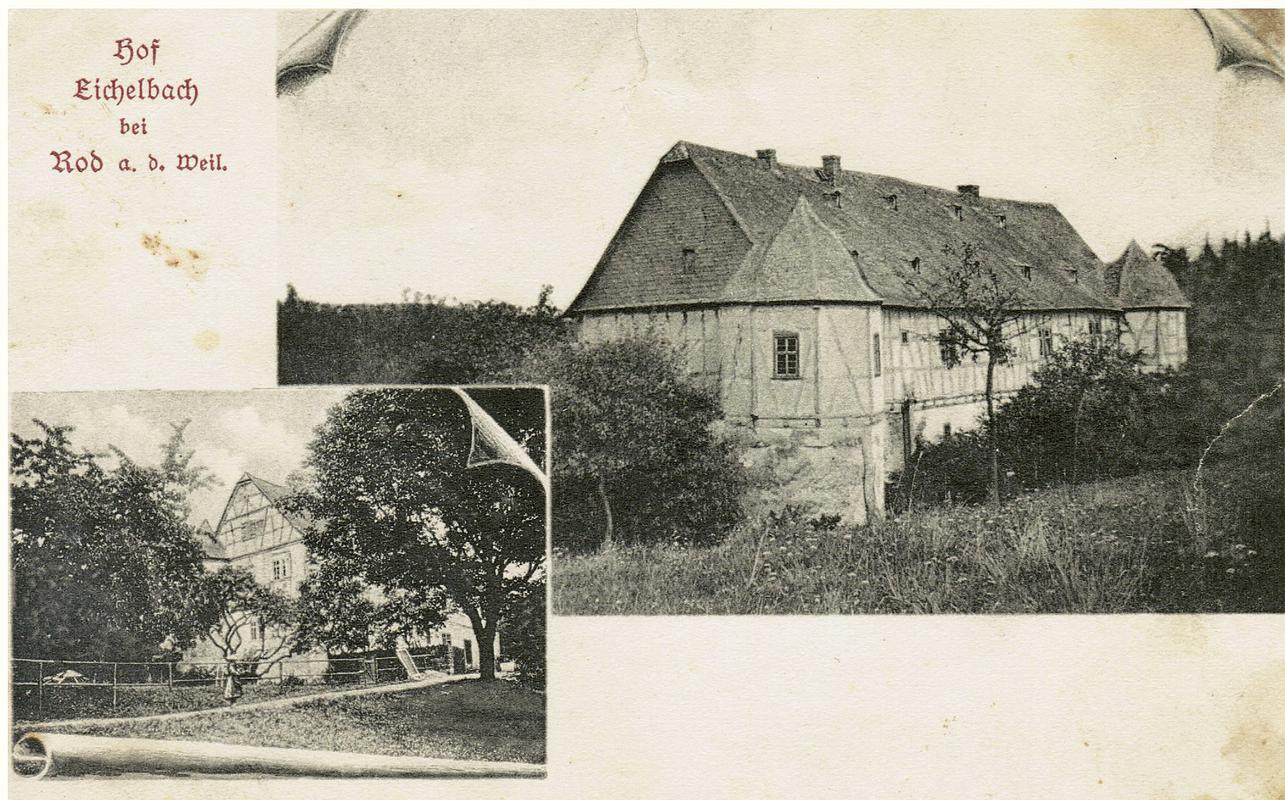 Die „curia in Eichelinbach“ gehörte bei ihrer Ersterwähnung 1213 zur Grafschaft Weilnau, kam 1302 an die Herrschaft Neu-Weilnau und mit dieser 1326 an Nassau. 1339-1615 war sie als Lehen im Besitz der Herren von Reinberg, wurde 1631 als Erblehen an einen ihrer Nachkommen vergeben und gelangte über diesen 1634 an von Wachenheim (Usingen). 1706 wurde der Hof mit seinen umfänglichen Ländereien (zwecks Dorfneugründung?) von Fürst Wilhelm Heinrich von Nassau-Usingen zurückerworben. Nach Aufhebung der Naturalfrohnden 1776 und den daraus resultierenden Landverkäufen diente das Herrenhaus des Hofes als Wohnung der Oberförsterei Eichelbach (1778-1880). Seit 1946 privat bewirtschafteter Betrieb und Gaststätte.