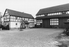 Im Bereich der wüst gefallenen Siedlung Brück liegendes Gasthaus mit dazugehöriger Hofanlage. 1752 als Schankwirtschaft und Herberge errichtet, während des Siebenjährigen Krieges in der Schlacht um die Ohmbrücke 1761 teilweise stark beschädigt. Fachwerk mit auf dem Sandsteinsockel stehenden Eckpfosten, K-Streben-Mannfiguren und Vorsprüngen am Geschoßwechsel, Satteldach mit Krüppelwalmen. Stallgebäude heute zu Wohnzwecken umgebaut. Über den Toren der Scheune im Hintergrund Inschrift: "DIESE SCHEUER HAT ERBAUT MIT GOTTES HIELFE KASPAR NAU UND DESSEN EHEFRAU JOSEPHINA GEBORENE GIES / VERFERDIEGT DURCH ZIMMERMEISTER JOHAN GEORG SCHNEIDER UND DESSEN SOHN KONRAD SCHNEIDER AUS NIEDERKLEIN IM JAHRE 1880". Im Wirtshaus schlossen 1762 die Führer der beiden Heere, Ferdinand Herzog von Braunschweig für England und die Marschälle d'Estrées und de Soubise für Frankreich den Waffenstillstand, der das Ende des 7-jährigen Krieges im Friedensvertrag von Hubertusberg vorbereitete. Anläßlich dieses Ereignisses wurde bald nach 1778 von den ehemaligen Kontrahenten die 8,50 m große "Friedenssäule" gestiftet, ein sandsteinerner Obelisk auf hohem Postament mit Zippus-Aufsatz und Inschriften unter dem französischen und dem englischen Wappen, sowie der Widmung über den beiden Wappen: "MARTIS FURORE QUASSATA DUCUM FOEDERA EXCIPIT MUTUA PIETATE RESURGIT ANNO MDCCLXII".