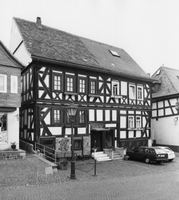 An der in den Marktplatz einlaufenden Marktgasse exponiert gelegenes traufständiges Wohnhaus, das heute deutlich sichtbar in zwei Einheiten geteilt ist. Die beiden Eingänge sind in die hohe, allerdings gestörte Sockelzone eingetieft. Das Fachwerk ist stark dimensioniert und durch K-Streben mit Sporn sowie Andreaskreuze in den Brüstungsfeldern geprägt. Die Eckpfosten stehen direkt auf dem Sockel, die Geschosse kragen leicht vor. Die rechte Giebelseite bildet mit ihrem Reichtum an Profilierungen und Verstrebungsfiguren einen besonderen Augenmerk im Stadtbild. Die Entstehungszeit dieses Ackerbürgerhauses mit ehemaliger Stallnutzung im Sockelbereich ist zwischen 1650 und 1700 anzusetzen.