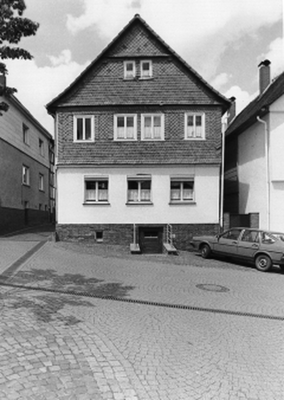 Giebelständiges, zweigeschossiges Wohnhaus mit massiv erneuertem Erdgeschoß, jedoch angemessen eingefügten neuen Fenstern, in Eckstellung an der Deorulfgasse. Sockel verfliest mit giebelseitigem Kellereingang. Fassade zum Markt in guter handwerklicher Schieferverkleidung, Dachstuhl in jüngster Zeit erneuert. Entstehung um 1700.