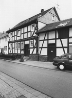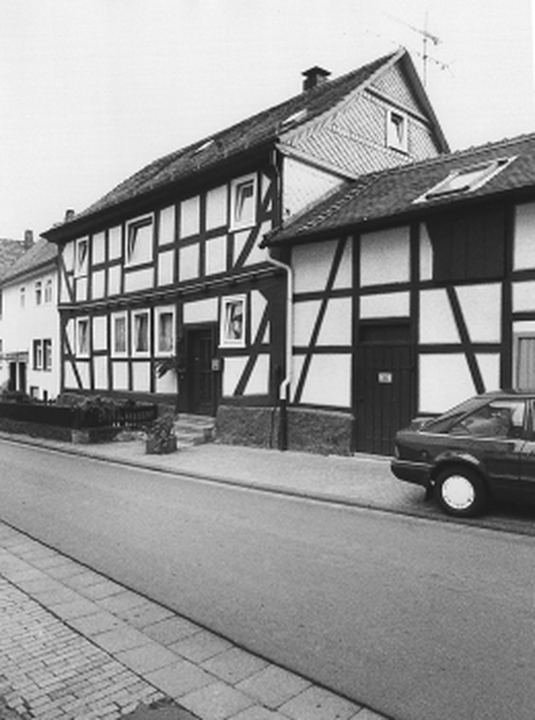 Traufständiges Ackerbürgerwohnhaus aus der Mitte des 18.Jhs. mit kräftigen, auf dem Sockel stehenden Eckstielen und überkragendem Obergeschoß, vermutlich gewölbter Keller, Zugang an der Straße ebenerdig, Wirtschaftsteil im rechten Anbau aus dem späten 19. Jh. Das Gebäude ist Teil eines von kleinmaßstäblicher Fachwerkbebauung geprägten Straßenzuges.