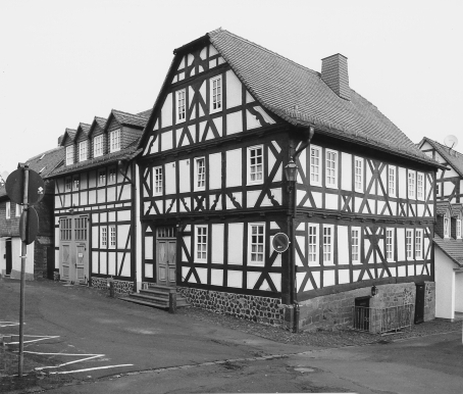 In städtebaulich exponierter Ecklage auf gewölbtem Keller errichtetes ehemaliges Wohnhaus, heute als Gasthaus genutzt. Auf dem Sockel stehende Eckstiele mit Wasserabweisern, dekorative, reich ausgestattete Mannfiguren, in den oberen Brüstungsfeldern z.T. geschweifte, genaste Andreaskreuze, am Geschoßversatz Profilierungen, Satteldach mit Krüppelwalm. Eingang giebelseitig über dreiseitige Freitreppe, der Keller ist durch Zugänge von außen her erschlossen. Erbaut wurde das Haus im frühen 18. Jh.