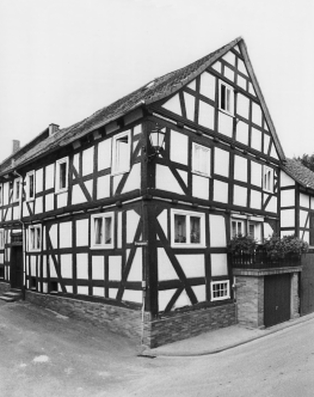 An der Ecke Kreuzgasse/Dr.-Max-Ehrenpford-Straße, in den engbebauten Bereich nordöstlich des Marktplatz gehörendes, traufseitig erschlossenes Wohnhaus ohne weitere Grundstücksfläche. Fachwerkkonstruktion des Erdgeschosses greift in den Keller hinunter. Auf dem Sockel stehende Eckständer, Geschoßwechsel mit Versatz, Füllhölzer mit schuppenartiger Kerbschnitzerei, Schwellen des Obergeschosses mit geschweifter Fase. Eingang höhergelegt, Garageneinbau auf Giebelseite. Entstanden um 1730.