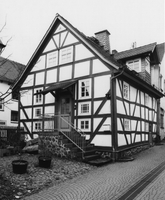 Sehr kleines, im dichtbebauten, westlichen Teil Amöneburgs gelegenes, zweizoniges Handwerkerhaus. Auf niedrigem Sockel ohne Keller stehendes Fachwerk mit ebenerdigem Eingang. Zugang direkt in die Küche, dort auch die Treppe nach oben; dahinter von der Küche aus zu erreichen der Stall mit der noch vorhandenen Boxenteilung. Dach über Zwerchgiebel mit Aufzugshaken zugänglich. Von hauskundlicher Bedeutung wegen seines minimierten zweizonigen Grundrisses. Entstehung in der ersten Hälfte des 18. Jhs.