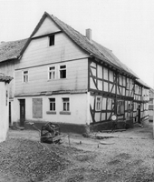 An der Ecke Mittelstraße/Kreuzgasse stehendes giebelseitig erschlossenes Handwerkerwohnhaus ohne Hofraum, im hinteren Bereich ehemals der Stall. Auf der Schmalseite erdgeschossig massiv erneuert. Rechte Traufseite durch mehrfache Veränderungen uneinheitlich. Breitgestellte Mannfiguren mit gebogenen Streben lassen auf eine Entstehungszeit um 1730 schließen.