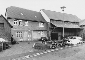 Zurückliegendes traufständiges Wohnhaus eines Zweiseithofes mit giebelseitig anschließender, im rückwärtigen Teil zur Stadtmauer aufwendig gebauten Scheune. Im Erdgeschoß Teile massiv erneuert, Hofseite verputzt. Ebenerdige Eingangstür mit zweiflügeligem Oberlicht. Für diesen innerörtlichen Bereich große Hoffläche. Inschrift über dem Scheunentor: "MIT GOTTES HILFE ERBAUTE DIESE SCHEUER LORENZ JÜNGST UND DESSEN EHEFRAU MARGARETHE GEBORENE KAUL DURCH DEN ZIMMERMEISTER JOH. MÜLLER DAHIER IM JAHR 18(60)"