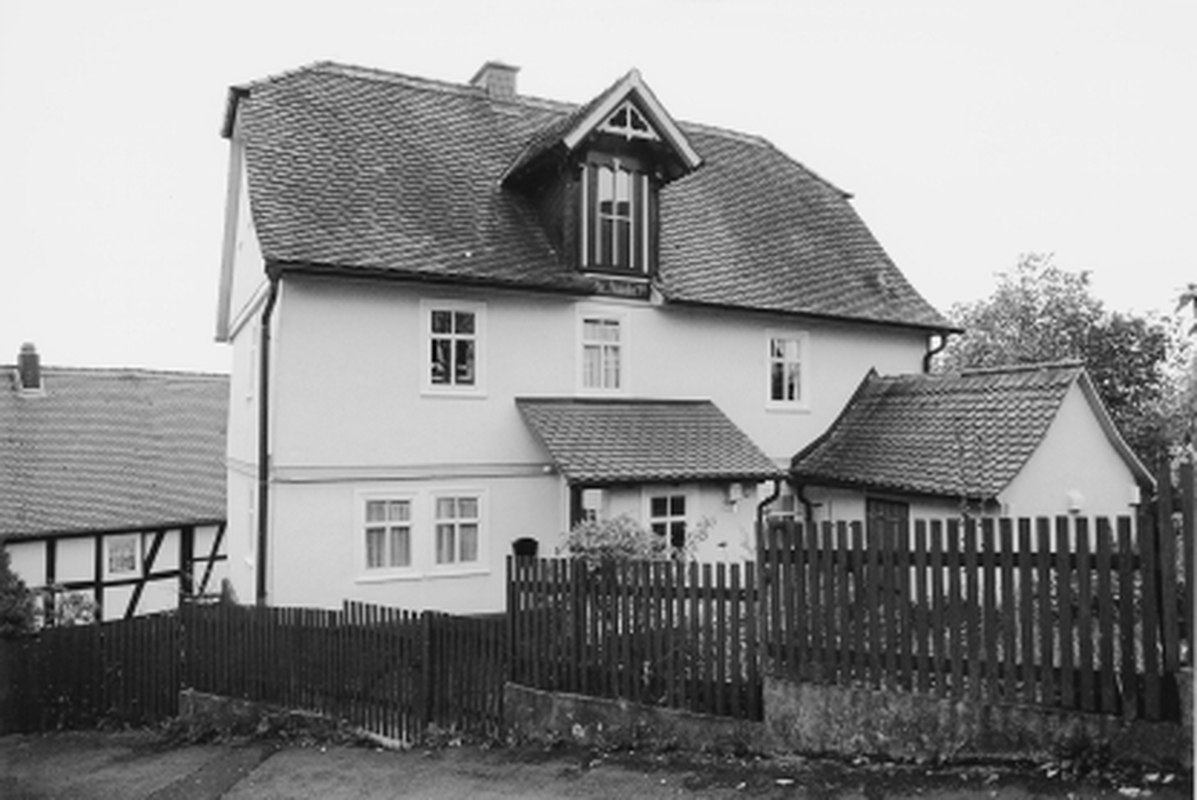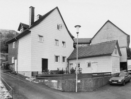 Kleines traufständiges, schon früh geteiltes Wohnhaus auf Bruchsteinsockel. Das Erdgeschoß des linken Teils wegen der Hanglage teils im Erdreich, früher als Stall genutzt. Fachwerk sehr einfach, vermutlich noch Ständerbauweise, stehender Dachstuhl, linker Teil traufseitig mit Holzschindeln, rechter Teil vollständig mit Asbestzementplatten verkleidet. Zeugnis für die Lebensverhältnisse der "kleinen" Leute in der zweiten Hälfte des 17. Jhs. Das Stallgebäude zu Haus Nr. 6 stammt aus dem frühen 19. Jh.