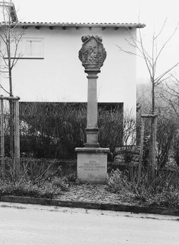 Wie einer längeren Inschrift zu entnehmen, wurde dieser Bildstock von einer ganzen Reihe Erfurtshäuser Bürger gestiftet. Er ist am westlichen Ortsausgang im Übergang in die Feldflur zwischen zwei Bäumen plaziert. Über dem Postament mit überkragender Platte erhebt sich ein quadratischer Pfeiler mit Basis und Kapitell, im rechteckigen Spitzgiebelaufsatz mit seitlichem Akanthuswerk und bekrönenden Engelsköpfen wird die Dornenkrönung dargestellt. Inschrift auf der Vorderseite: KONRAD PREIS, auf Rückseite stark verwittert: 1869 (wohl Datum einer Renovierung). Nach archivalischer Überlieferung ist der Bildstock vor 1710 entstanden.