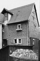 Kleines traufständiges Wohnhaus auf minimaler Parzelle. Niedriger Sandsteinsockel, einfach stehender Dachstuhl. Unter der handwerklich gestalteten Schieferverkleidung ist auch dank der geringen Eingriffe durch Fenster ein gut erhaltenes Fachwerk der zweiten Hälfte des 18. Jhs. zu erwarten. Ungewöhnlich das kleine Zwerchhaus mit Auslegebalken.