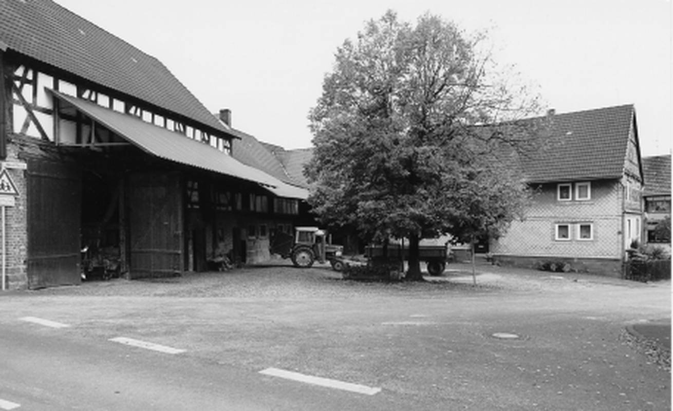 An der Gabelung der Kirchhainer Straße gelegener Zweiseithof mit Öffnung zur Neuen Gasse. Giebelständiges, in der Tradition des Ständerbaus errichtetes Wohnhaus auf niedrigem Sandsteinsockel, ebenerdiger Eingang, vermutlich stehender Dachstuhl, hofseitige Traufe mit Asbestzementschindeln verkleidet, Giebeldreieck mit Schieferbehang, darin eingearbeitet die Jahreszahl 1896. Entstehungszeit des Hauses jedoch bereits im 17. Jh. Exponiert dicht am Straßenrand stehende Scheune auf Sandsteinsockel in auffälligem Fachwerk aus Mannfiguren mit Kopfgegenstrebe, Halsriegel und Sporn. Inschrift über dem Torbalken: "DISSER BAU STET IN GOTES HAND BEWAR IN VOR FEUER UND BRANT ER IST ERBAUT IM IAR 1781 DURCH JOHANN KURT SCHICK UND SEINE EHEFRAU ELISABETA ZIMMERMEISTER TOMAS KRWALT".