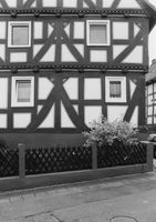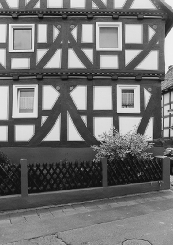 Giebelständiges, markantes Wohnhaus eines schmalen Hakenhofes an der Biegung der Straße Am Breitenstein. Niedriger Sandsteinsockel mit ebenerdigem Zugang. Schwellriegel im Erdgeschoß erneuert. Kräftige Eckständer und Streben, Kopfhölzer mit Rosetten und Herzen verziert, Schwellenkranz des Obergeschosses und Giebeldreieck sind mit einem Zahnfries versehen. Über der Eingangstür Inschrift: "IM JAHR NACH DER GEBVRT JESV CHRISTI 1671 DEN 29 MAI TAT HENRICH FISCHER DISES HAUS ERBAVEN SAHM MITT SEINER EHLIGEN MARGRETA TUGENDSAHM HAT GEMACHT MEISTER MERDEN MIT SEIN GESELLEN". Ehemaliger Stallteil durch Umbau gestört.