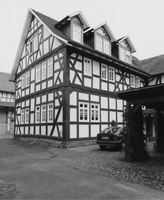 Die Scheune auf niedrigem Feldsteinsockel bildete ehemals den Abschluß der Bebauung zum Wallgraben hin. Die Art der Verstrebungen läßt auf eine Entstehung zwischen 1720 und 1760 schließen: Eckständer mit eingearbeiteten Regenabweisern aus sehr kräftigen Hölzern bis auf den Sockel reichend, die urwüchsig gebogene Schwelle als Riegel eingezapft, K-Verstrebungen mit Halsriegel, kleinem Kopfholz und Sporn, vorkragendes Obergeschoß mit profilierter Schwelle. Das rückwärtige Tor wurde später für die Durchfahrt der Dreschmaschine eingebaut. In jüngster Zeit zum Wohnhaus umgestaltet.
