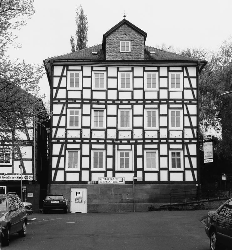 Ein in der Sichtachse der Straße Gänseburg repräsentativ angelegtes dreigeschossiges Wohnhaus, im Hausteinsockel auf 1858 datiert. Das rein konstruktive, sehr gleichmäßige Rähmfachwerk in zeittypischer Ausformung. Als Teil der Platzfassade ist dieses spätklassizistisch beeinflußte, großvolumige Gebäude mit Zeltdach und mittigem Zwerchhaus von besonderer Bedeutung im Straßenraum.