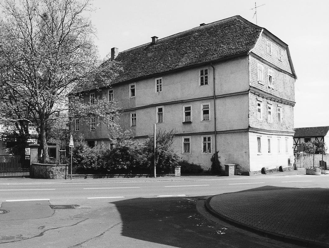 Ehemaliges Amtsgericht von besonderer Wirkung an der Ecke zur Mühlgasse und in der Blickachse der Untergasse. Dreigeschossiger großvolumiger Fachwerkrähmbau mit umlaufendem Geschoßversprung. Heute vollständig verputzt bzw. mit Schiefer verkleidet, das Dach mit Krüppelwalm. Traufseitig durch hohe Halle erschlossen. Früher auch Sitz der Amtsrichter- und der Gendarmwohnung. Zwei Haustüren des 19.Jhs. erhalten, das Gebäude selbst in der Mitte des 17. Jhs. entstanden.