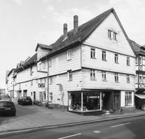 Giebelständiges, dreigeschossiges Wohnhaus der Zeit um 1700 in Eckstellung, straßenseitig erschlossen. Ständerbaugefüge in den beiden unteren Geschossen, das aufgesetzte Obergeschoß überkragend. Fensterbrüstungen und Eingangstür aus dem frühen 19. Jh. erhalten. Zum Teil verkleidet, Laden im Erdgeschoß.