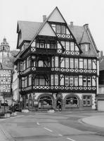 Dreigeschossiger Eckbau zur Untergasse, datiert 1908-09; differenziert gestalteter dreigeschossiger Baukörper mit massivem Sockelgeschoß aus segmentbogigen Schaufenstern und Eingängen mit Sandsteineinrahmung und Putzfeldern. Die oberen Stockwerke in lebhaftem Schmuckfachwerk mit Erkerausbildung, Loggien, großen historisierenden Zwerchhäusern und Dachgauben. Am ehemaligen Steigertstor gelegen prägt das in Formen des frühen Heimatschutzstil erichtete Wohnund Geschäftshaus den südlichen Stadteingang. Als Entwurfsverfasser ist der Architekt August Dauber überliefert, der auch die Villa Steinweg 4 geplant hat.