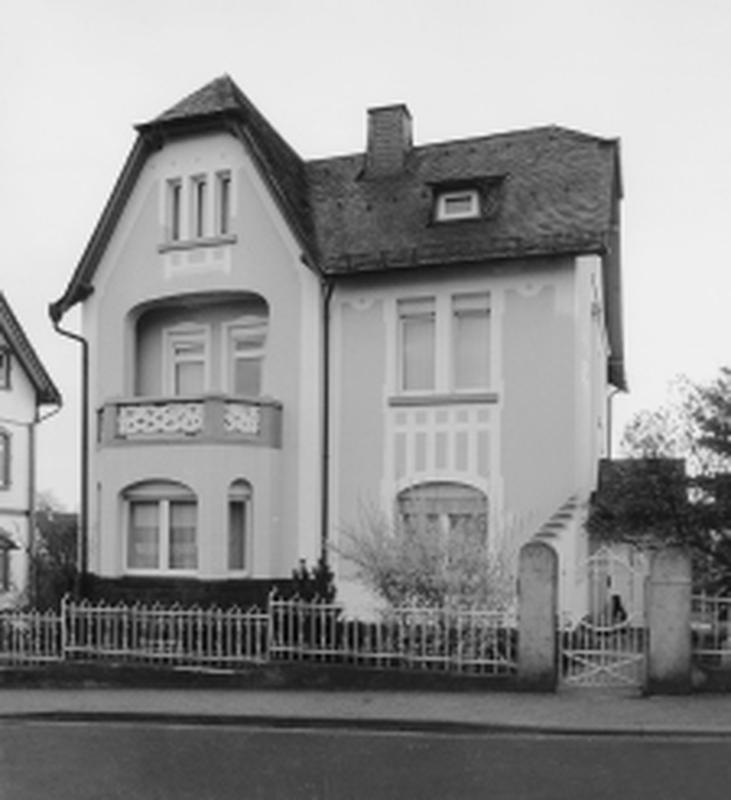 Freistehende Villa über mehrteiligem Grundriß als traufständiger, dem Jugendstil verpflichteter Putzbau mit großem Zwerchhaus und abschließendem Krüppelwalm. Straßenseitig vorangestellt ein fünfseitiger Erker mit Loggienbalkon. Die Fenster des zweistöckigen Baus im Erdgeschoß mit Rundbogen, am rechten Giebel ein asymmetrischer Risalit zur Aufnahme der Treppenhausfenster. Als Schmuck das Schlangenmotiv im Brüstungsdekor des Balkons und die als Flachrelief ausgebildete Inschrift: Haus Gertrud. Aus der Bauzeit auch die Einfriedung.