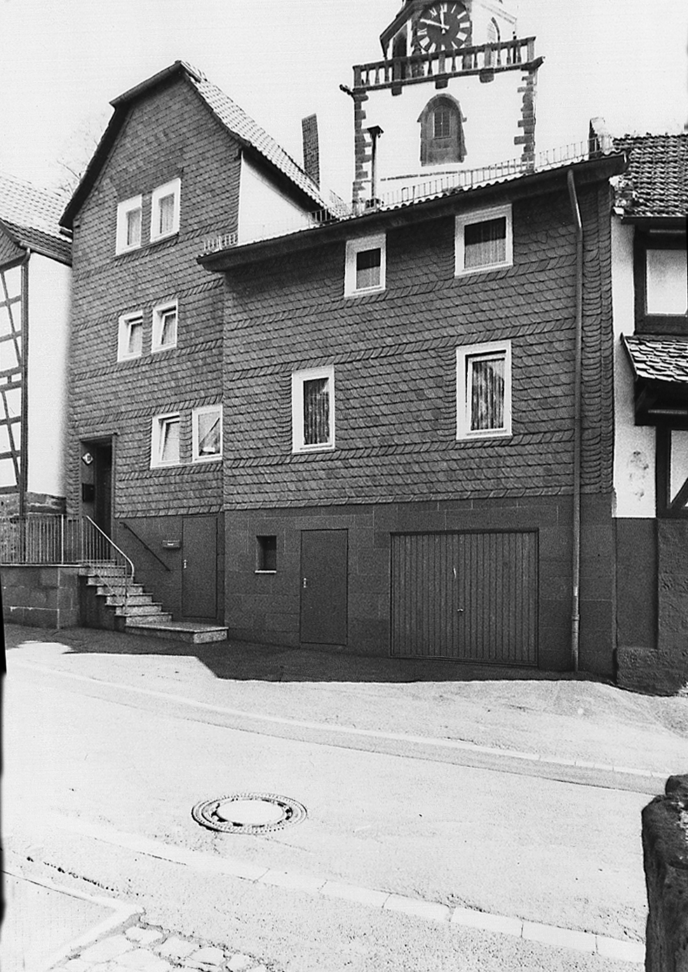 Schlankes giebelständiges Ackerbürgerhaus des späten 18. Jhs. auf hohem Sockel mit Stallzugang. Das dreigeschossige Gebäude direkt an die Kirchhofmauer angebaut, Fassade mit Schiefer verkleidet, Dach mit Krüppelwalm. Rechts Anbau aus dem 19. Jhs. mit Garageneinbau im Sockel, ebenfalls schieferverkleidet. Durch die schlanke Proportion ist das Wohnhaus ein wichtiges städtebauliches Element in der der Form des Kirchhofes folgenden Straße.