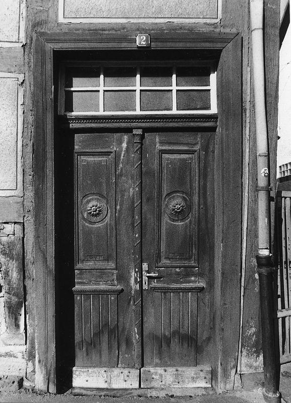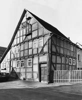 Giebelständiges zweigeschossiges Ackerbürgerhaus als Teil eines ehemaligen Zweiseithofes, Zugang in das querliegende Gebäude ebenerdig, gut erhalten die klassizistische Füllungstür mit Oberlicht und Zahnschnittfries. Rähmfachwerk der Zeit um 1700 mit einfachem, vorkragenden Stichgebälk und Schwellriegelverzimmerung. Keller in den Fachwerkbereich hinaufreichend, hier ehemals Stallnutzung, darüber Wohnbereich erhöht. Ausladende Eckstreben, im Giebel Firstsäule sichtbar. Seitlicher Anbau mit Stall und Speicher aus dem 19. Jh.