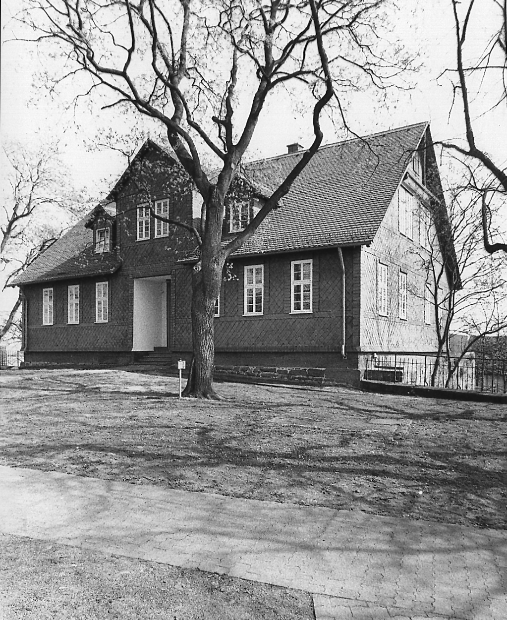 Seit 1904 als Rektoratsschule genutztes eingeschossiges Gebäude, breitgelagert mit großem ausgebauten Dach und mittigem Zwerchhaus, auf den Grundmauern der alten, um 1344 entstandenen Burg Kirchhain errichtet, Teile dieses "Festen Hauses", eines Wohnturmes, noch im unteren Teil erhalten. Das Gebäude aus der Zeit um 1830 in streng symmetrischer, siebenachsiger Gliederung, durch hohe Fenster belichtet und qualitätvoll mit Schiefer rundum verkleidet. Heute als Gemeindesaal genutzt.