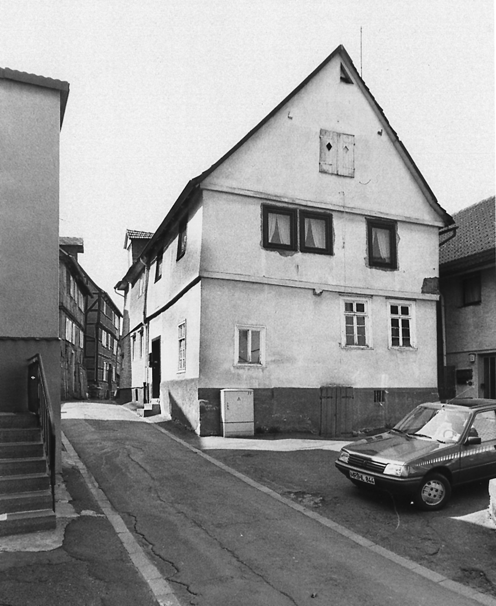 Traufständiges, zweigeschossiges Doppelgebäude gegenüber der Einmündung eines Treppenaufgangs zur Kirche mit eingetieftem Eingang, unter dem höherliegenden Bereich jeweils Stallnutzung. Haus Nr. 9 mit Zwerchhaus und Ladeluke, Haus Nr. 7 mit Ladeluke giebelseitig, Rähmbau des späten 18. Jhs. mit Putz bzw. Platten verkleidet. Handwerkerhaus mit landwirtschaftlichem Nebenerwerb als Teil der Bebauung, die hier auf einer schmalen Zunge von jeweils zwei Rücken an Rücken stehenden Gebäuden gebildet wird.