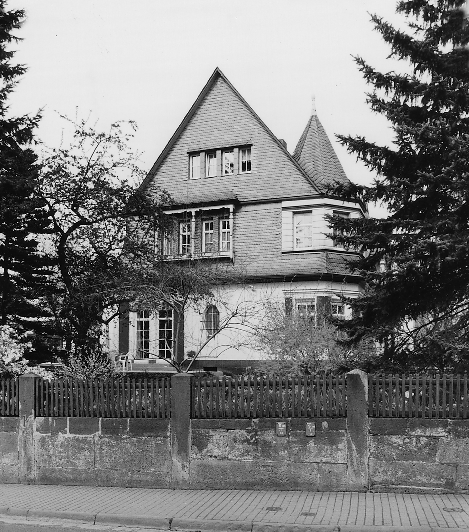 Eingeschossige freistehende Villa mit hohem Satteldach, von der Straße zurückgesetzt am ehemaligen Stadteingang gegenüber dem Annapark. Erbaut 1912 mit massiv aufgeführtem Erd- und zurückgesetztem, verschiefertem Dachgeschoß. Dieses durch Gauben und einen polygonalen Eckerker mit Turmbesatz gegliedert. Als Architekt zeichnet wohl August Dauber verantwortlich, dem auch der Bau der Gänseburg zugeschrieben wird.