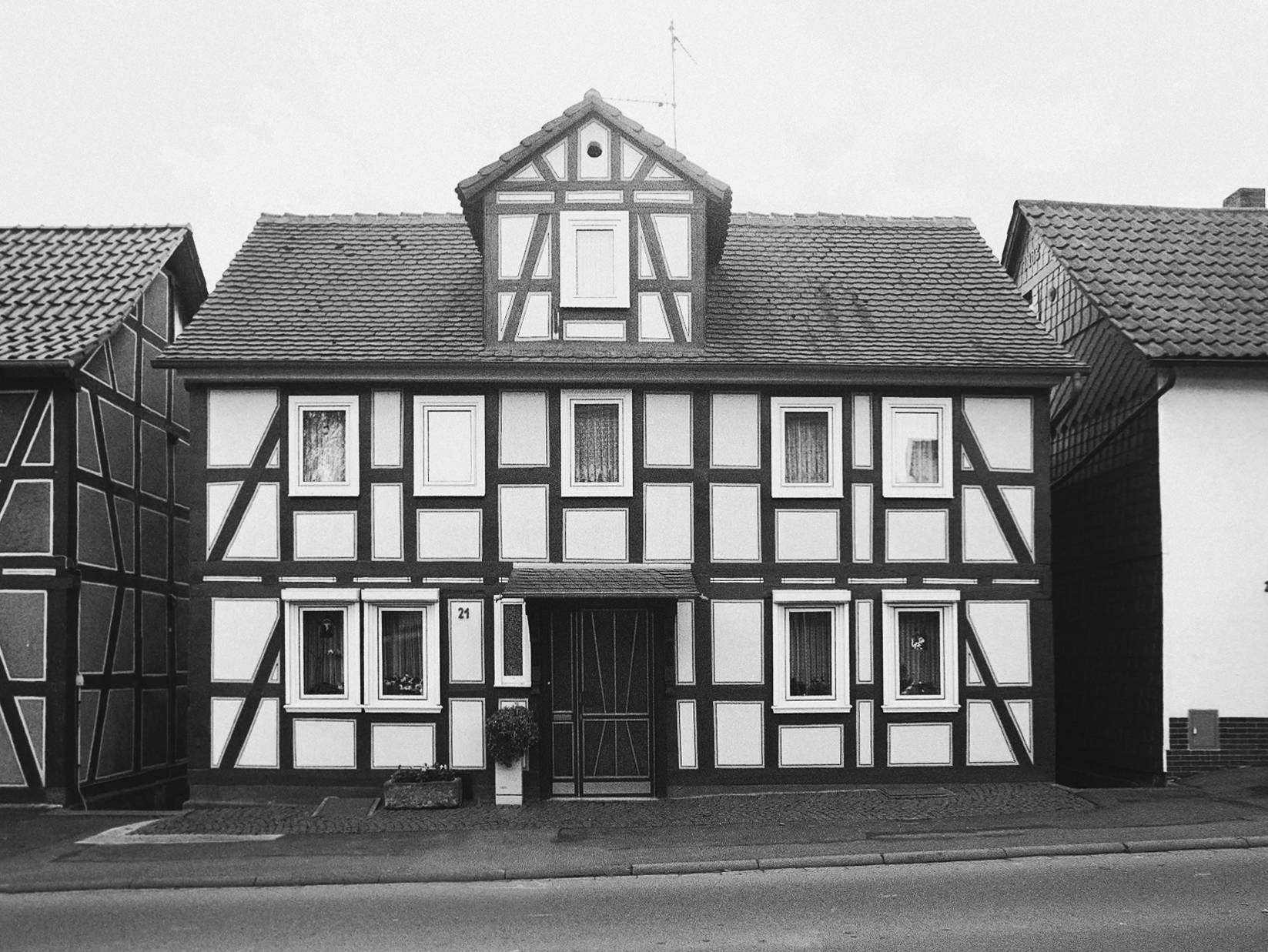 Fünfachsiges Wohnhaus, das als wichtiger städtebaulicher Bestandteil der in diesem Bereich geschlossenen Straßenrandbebauung fungiert. Der traufständige Fachwerkbau, der im ausgehenden 19. Jh. errichtet wurde, erfährt durch das mittig angeordnete Zwerchhaus eine Hervorhebung gegenüber den beiden ebenfalls traufständigen Nachbarhäusern. Das schlichte Fachwerk und die Größe des Hauses lassen auf Handwerker oder Tagelöhner als Erbauer schließen.