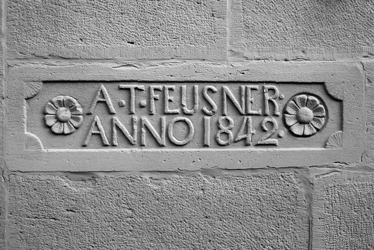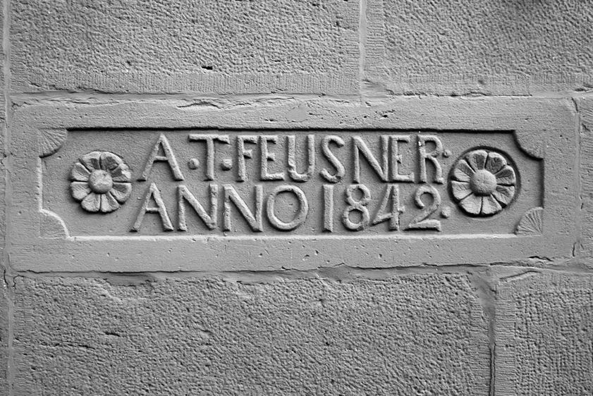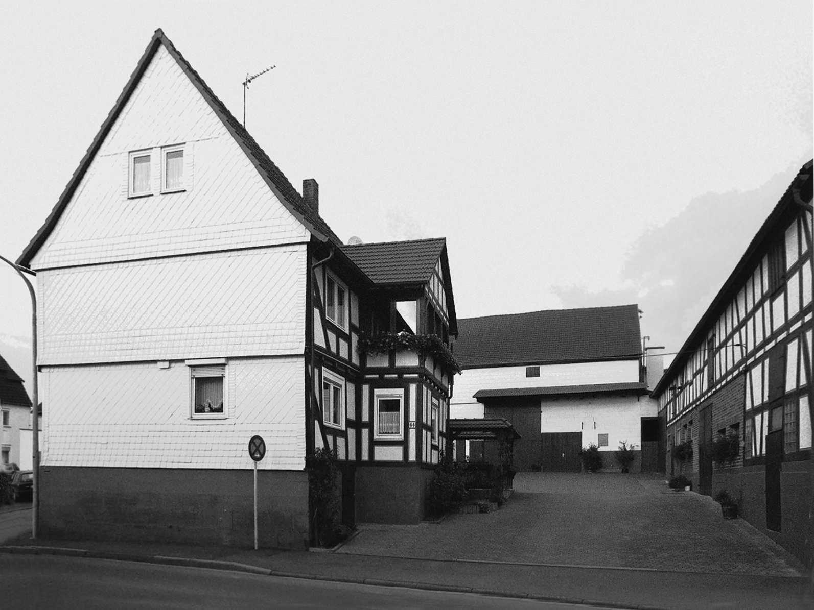 Dreiseithof an der Einmündung der Sindersfelder Straße, durch Ecklage von besonderer städtebaulicher Prägnanz. Das Wohnhaus ein Rähmbau, datiert 1845, mit umlaufendem Geschoßversatz und einfachen 3/4-Streben, der Straßengiebel handwerklich gut mit Platten versehen. Die rundum verkleidete Scheune im Hintergrund vermutlich zeitgleich. Am Stallgebäude rechts schöner Inschriftstein mit Datierung 1842.