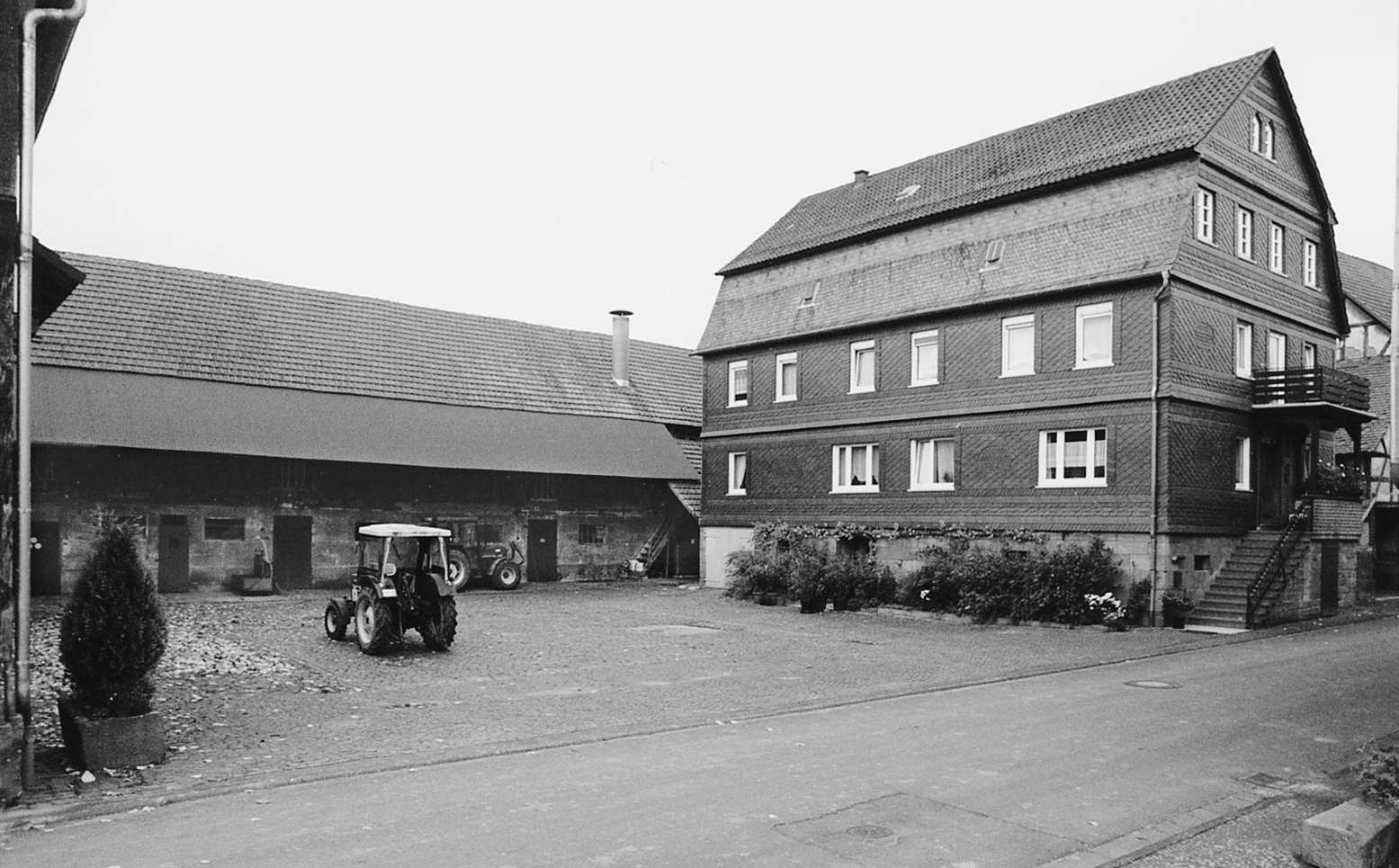 Regelmäßiger Dreiseithof am nordwestlichen Rand des Ortskerns mit großvolumigem, giebelständigen Wohnhaus von 1878 auf einem sorgfältig gearbeiteten Werksteinsockel. Unter der allseitigen Verkleidung dürfte ein Rähmbau mit konstruktivem Fachwerkgefüge verborgen sein. Aus der gleichen Zeit stammt das querstehende Stallgebäude. Die gegenüberliegende Scheune mit Taubenhaus und gut erhaltenem Fachwerk ist 1833 erbaut.