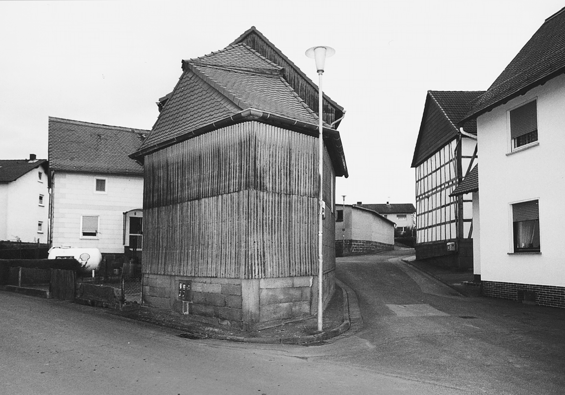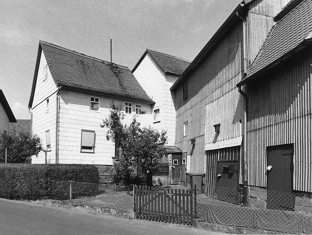 Polygonal auf einer Insel angeordnete kleinbäuerliche Hofanlage, die heute allseitig verkleidet ist und dem 19. Jh. entstammt. Von ortsgeschichtlicher Bedeutung, da der Hof ehemals in jüdischem Besitz war und in der Überlieferung zeitweise als Judenschule genutzt wurde.
