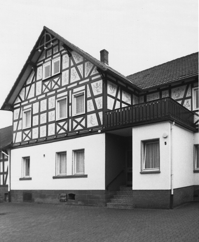 Traufständiges Wohnhaus in exponierter Lage an der Ecke der Kirchhofmauer, niedriger Sockel, vermutlich ehemaliges Wohnstallhaus, im Erdgeschoß Fachwerk im 19. Jh. erneuert, Profilierungen am Geschoßversatz, breitgestellte Mannfiguren der Zeit um 1750, durch Anbau rechts gestört.
