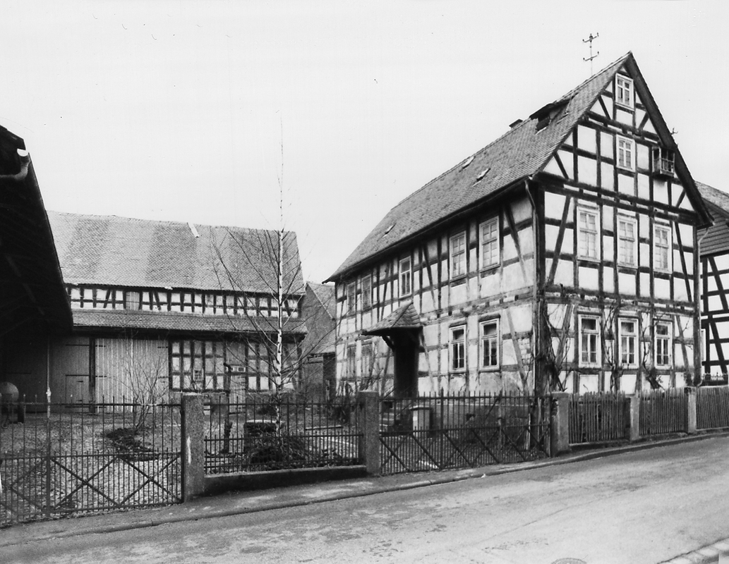 Nahezu unverändert erhaltener Dreiseithof aus der Zeit um 1890. Das auf einem Werksteinsockel aufbauende Wohnhaus ist giebelständig angeordnet, das Fachwerk ist wie beim Nachbarbau Lange Gasse 8 durch konvergierende Streben ausgesteift. Das Stallgebäude ist im Erdgeschoß vollständig in Sandstein ausgeführt. Im Inneren sind möglicherweise noch ursprüngliche Wandbemalungen vorhanden. Im Basaltpflaster des Hofs ist noch die eingelassene Miste erhalten. Der Hofabschluß in Form eines Staketenzaunes und zweier schmiedeeiserner Tore ist aus der Bauzeit überliefert.