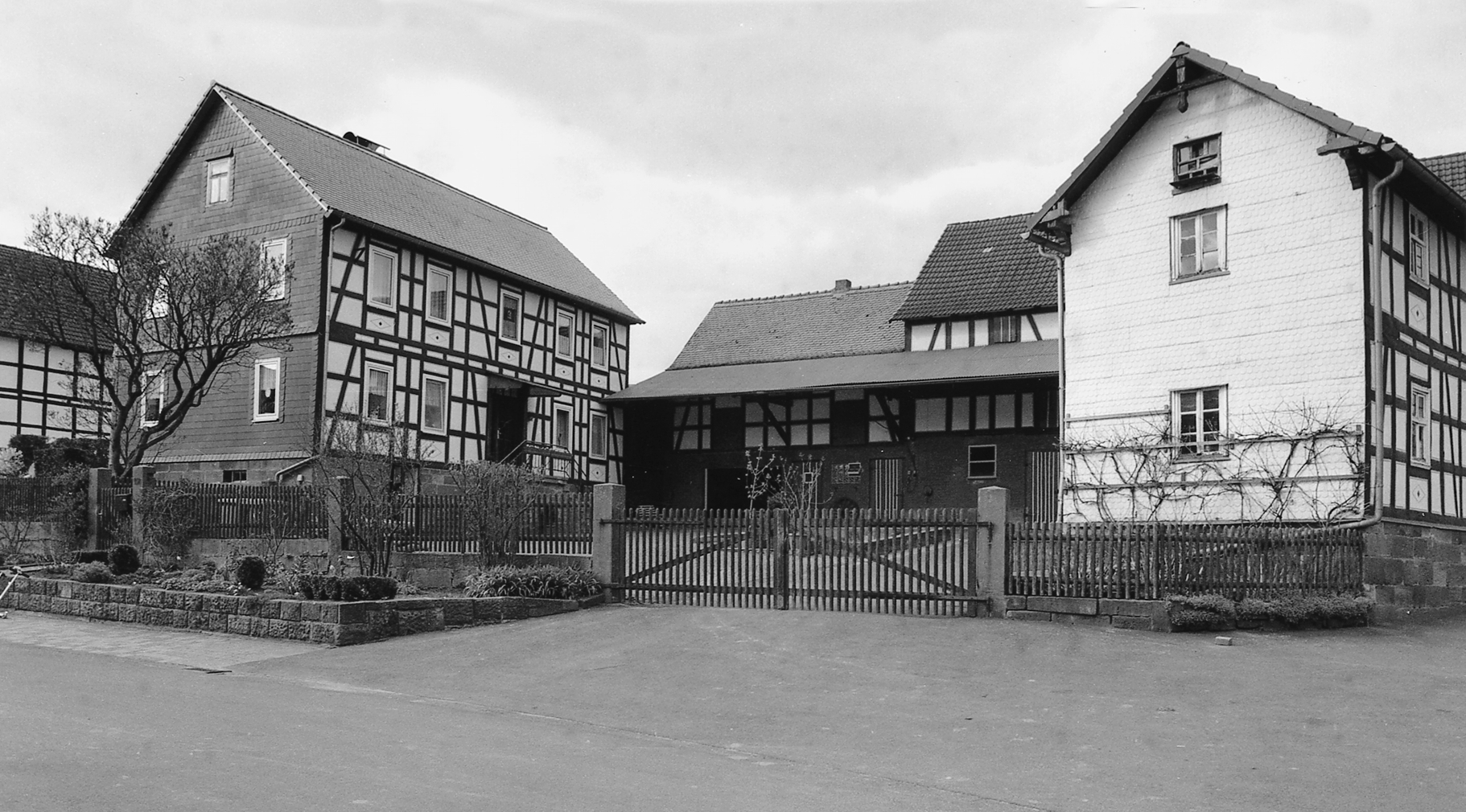 Gut erhaltene Dreiseithofanlage, komplett am Ende des 19. Jhs. entstanden, in der Sichtachse der Straße gelegen und durch die erhöhte Lage zusätzlich betont. Wohnhaus auf hohem Werksteinsockel als Rähmbau in klassizistischer Gestaltung mit zweiläufiger Treppe und streng symmetrischer Fassade. Scheune und Stallgebäude in ähnlicher Ausführung. Giebelseiten zur Straße mit Plattenverkleidung.