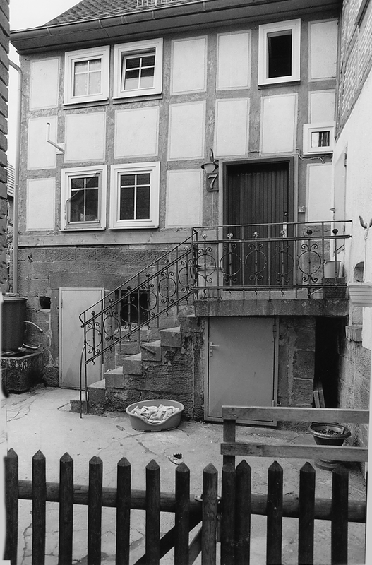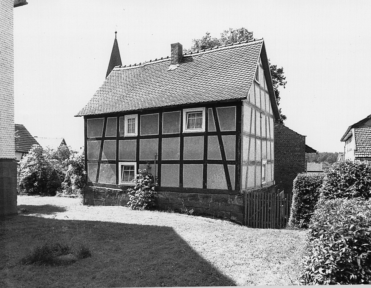 Im rückwärtigen Bereich eines schmalen Grundstücks stehendes Handwerker- oder Tagelöhnerwohnhaus aus dem 19. Jh. Ungewöhnlich für die Zeit ist die Errichtung in Ständerbauweise, die hier offenbar als besonders holzsparend in Betracht kam. Durch das ansteigende Gelände Ausbildung eines hohen Sockels.