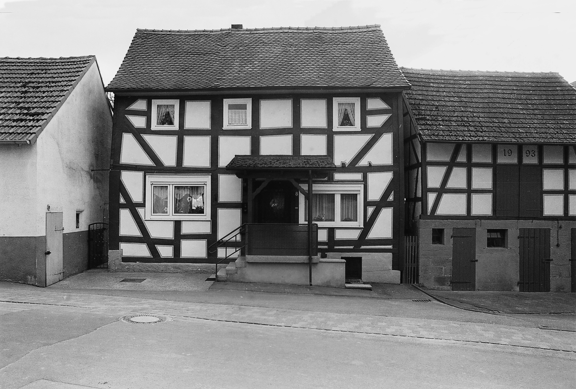 Kleines Wohnhaus als Teil einer der Straße folgenden traufständigen Bebauung mit Abschluß durch Haus Nr. 6. Das Gebäude bildet mit einer Stallscheune aus dem 20. Jh. das Ende des alten Dorfkerns. Das Gefüge ist ein Ständerbau mit durchlaufenden Eckstielen und breitgestellten "halben Männern" an den Ecken aus der Zeit um 1700. Der Stubenbereich rechts ist mit niedrigem Keller versehen. Durch unproportionierte Fenstereinbauten Störung der gleichmäßig gegliederten Fassade.