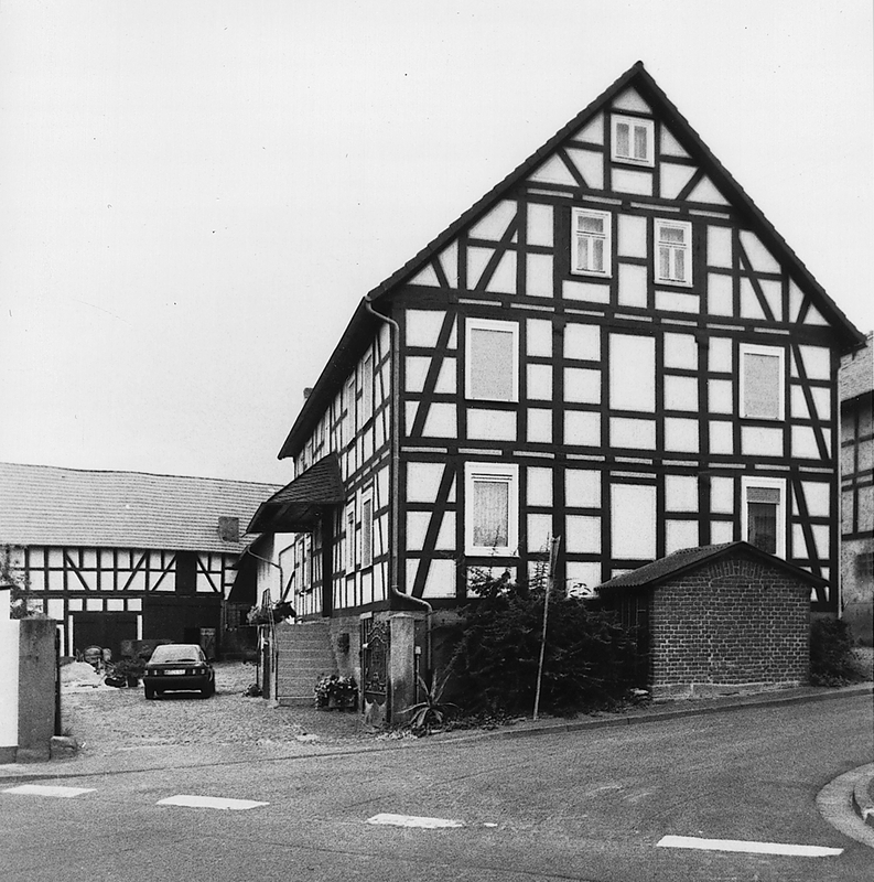 Wohnhaus außerhalb des Ortskernes als zweigeschossiger, giebelständiger Mischbau. Zu Beginn des 20. Jhs. auf Hausteinsockel im Erdgeschoß in Ziegelstein mit zweiläufiger Sandsteintreppe und rundbogigen Fenstern errichtet. Das Obergeschoß auf Stichbalkenlage mit verzierten Köpfen in ziegelausgefachter Holzkonstruktion. Die streng symmetrische Fassade mit historisierenden Verstrebungsfiguren. Über der Originalhaustür ein schiefergedecktes Vordach aus der Bauzeit.