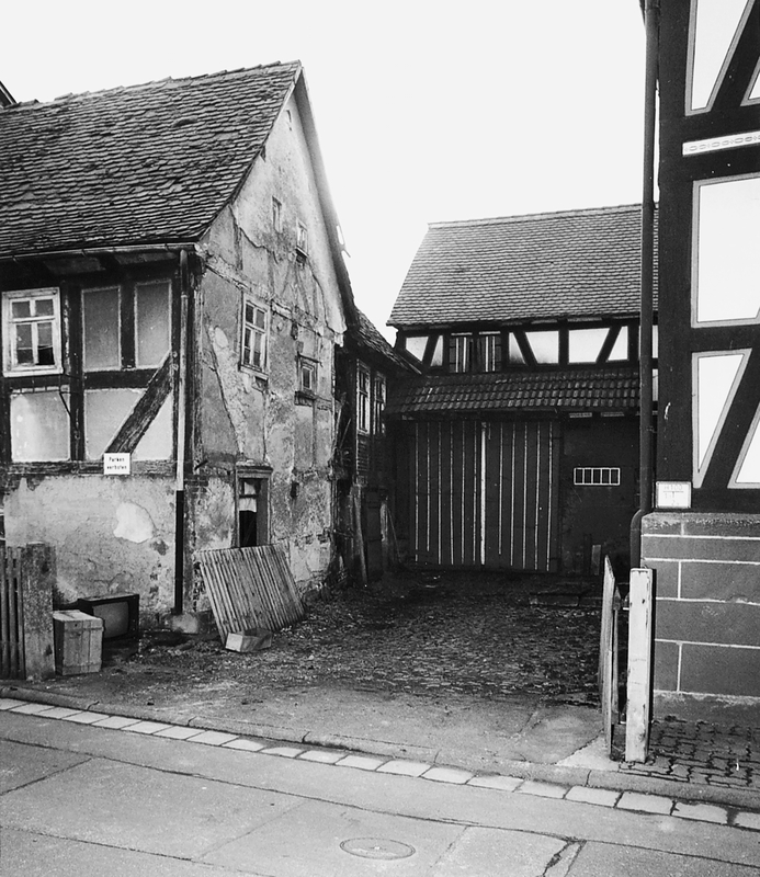 Scheune des 19. Jh., zusammen mit einem bereits abgebrochenen Tagelöhnerhaus ehemals Bestandteil einer kleinen Hofstelle im Bereich der großen Hofanlagen an der Südseite der Alten Seite.