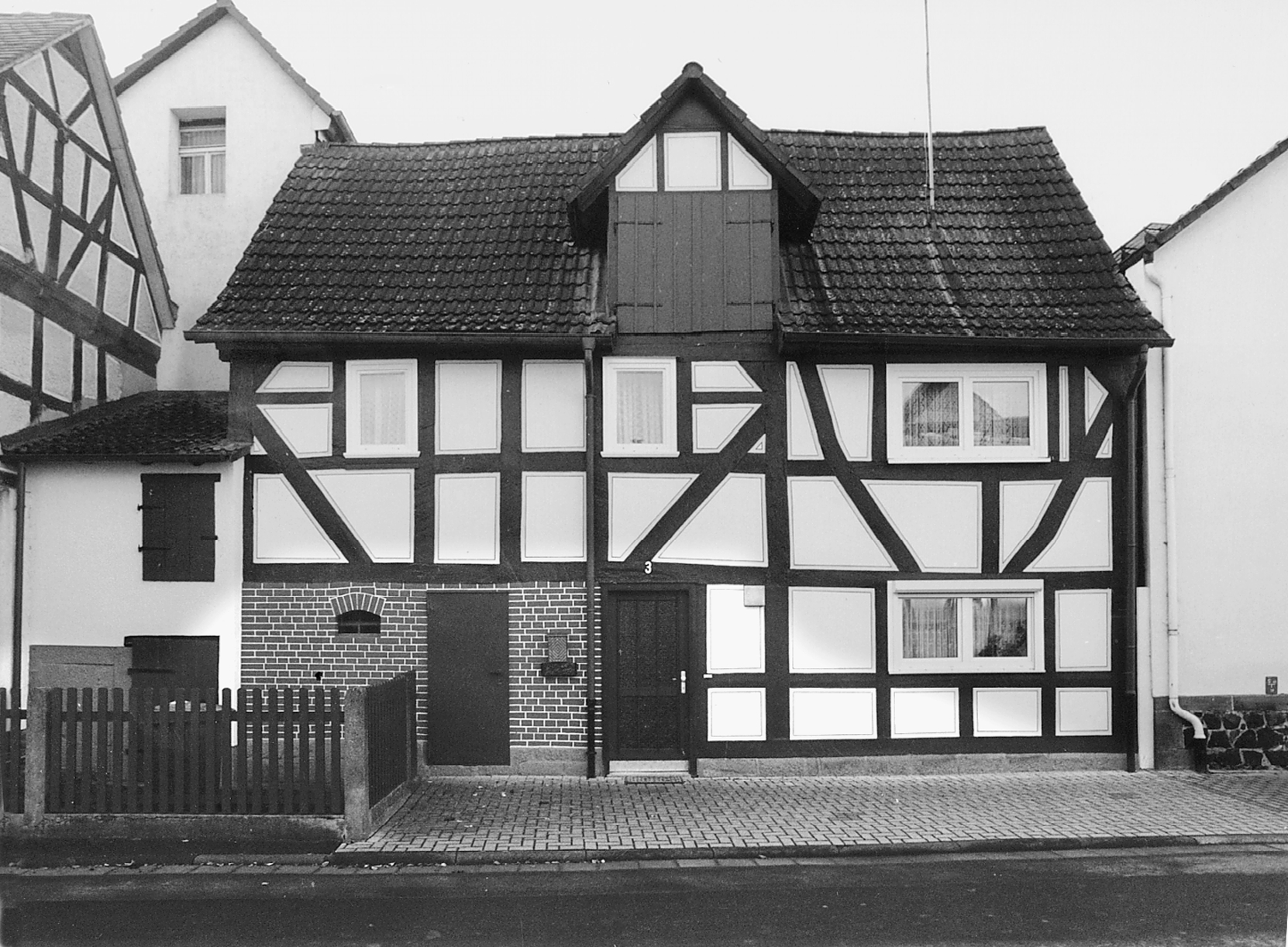 Traufständiges Einhaus, gegenüber dem linken Nachbarn zurückliegend, mit Ständerfachwerkgefüge und V-förmiger Strebenstellung. Über dem ebenerdigem Eingang ein Zwerchhaus als Ladeluke für den Dachboden. Das als Wohn- und Wirtschaftshaus eines Tagelöhners in einfachem Fachwerk errichtete Gebäude ist in das frühe 18. Jh. zu datieren.