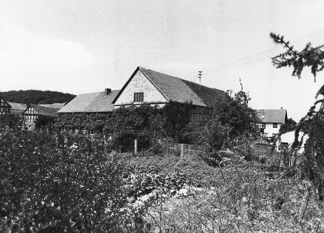 Dreiseithof mit zwei giebelseitig aneinanderstehenden Wirtschaftsgebäuden des 19. Jhs., die das Dorf mit benachbarten Gebäuden nach Osten abschließen. Die Stallgebäude zur Ohmstraße verkleidet. Das Wohnhaus in jüngster Zeit errichtet. Städtebaulich wichtige Anlage als Umgebungsbebauung der Kirche.