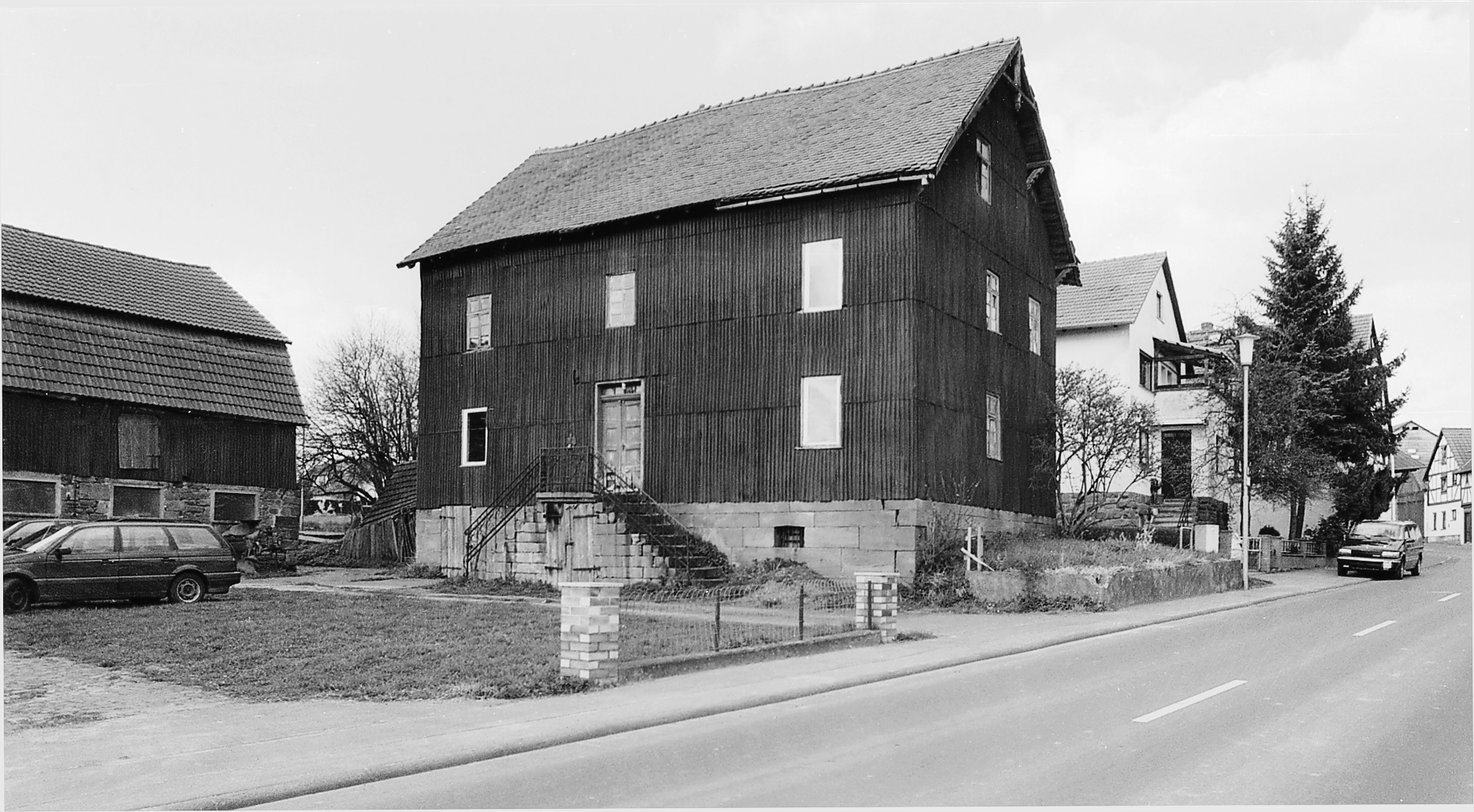 Den südlichen Ortseingang markierende Hofanlage, bestehend aus einer Mansarddach-Stallscheune und einem altem Wohnhaus. Der zweigeschossige, giebelständige Rähmbau aus der Zeit um 1860 steht auf hohem Sockel. Original erhalten sind die zweiläufige Freitreppe und die asymmetrisch geteilte Haustür aus der Bauzeit. Im Sockelbereich ist die ehemalige Stallnutzung noch zu erkennen. Das Dach ist mit einem Kniestock versehen und durch ein Ziergespärre geschmückt. Unter der Verkleidung ist ein für die Zeit typisches konstruktives Fachwerk zu erwarten. Als Auftakt der Bebauung am südlichen Ortsrand ist der Hof aus städtebaulichen Gründen von besonderer Bedeutung für die Gesamtanlage.