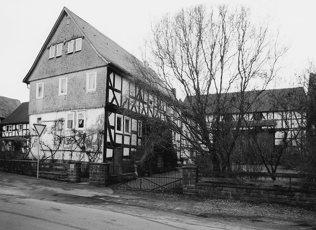 Dreiseithof in exponierter Ecklage zur Himmelsberger Straße mit ehemals als Gasthaus dienendem Wohnhaus. Über dem Gewölbekeller ein Rähmbau mit allseitigem Geschoßversprung, Mannfiguren mit Sporn und S-förmig gebogenen Brüstungsstreben. Unter dem Podest der zweiläufigen Sandsteintreppe ehemals Kellerzugang. Teile der Fassade mit handgemachten Holzschindeln verkleidet. Die Scheune in Haustein datiert 1857.