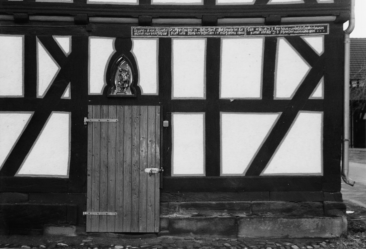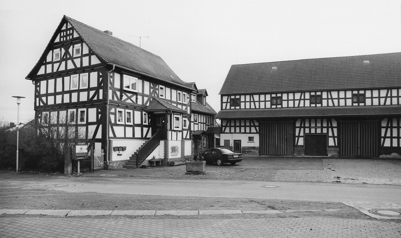 Großflächiger Dreiseithof am südöstlichen Ende des Ortskerns. Das giebelständige Wohnhaus in reichem, teilweise in den Keller reichendem Fachwerk des frühen 18. Jhs. mit Schwellriegelverzimmerung und Wasserabweisern an den Eckstielen. Neben den vollausgebildeten Mannfiguren von besonderem Interesse ist der fränkische Fenstererker im Obergeschoß mit gedrehten Säulen und profilierten Konsolen. Der anschließende Stall und die langgestreckte Scheune aus dem frühen 20. Jh. Das gegenüberliegende Stallgebäude mit der Inschrift: "Bauen ist ein schöne Lust wann es nur kein Geld kost - dieser Bau steht in Gottes Hantt Gott bewahr ihn für Feuer und Brand - erhoben den 19. März 1800 - hat erbaut IH Steinhaus und Elisabetha Steinhausin Zimmermeister ICH Schneider von Niederklein".