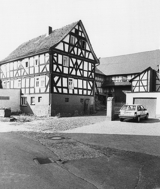 Dreiseithof mit - für die Brunnengasse ungewöhnlich - traufständigem Wohnhaus, das, von der Straße zurückgesetzt, rückwärtig erschlossen ist. Ernhaus auf hohem Sockel, jedoch noch mit tiefliegendem Eingang; das ehemals bis in den Keller reichende Fachwerk wurde im Sockelbereich weggeschnitten und durch verputztes Mauerwerk ersetzt. Als Verstrebung Mannfiguren mit Halsriegel und Sporn sowie Wilde Männer mit sich überblattenden, Vförmigen 3/4-Streben. Die Torpfosten mit Datierung 1819 und das Hofpflaster erhalten. Die Scheune aus dem 19. Jh.