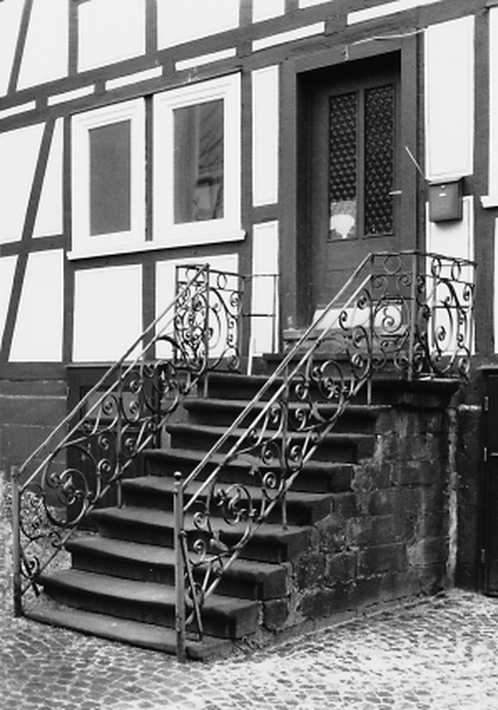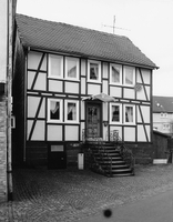 Gleichmäßig fünfachsig angelegtes Wohnhaus auf hohem Werksteinsockel in konstruktivem Fachwerkverband errichtet, als Besonderheit die senkrecht zum Haus stehende Sandstein-Freitreppe mit eisernem Geländer, die aus der Bauzeit original überliefert ist. Der heute zum Teil plattenverkleidete Bau ist ein gut erhaltenes Beispiel für die Bauweise in den Gründerjahren nach 1870.