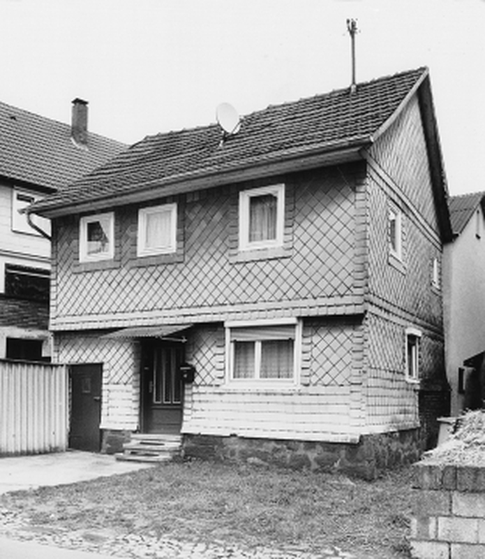 Traufständiges Wohnhaus auf Bruchsteinsockel; links neben dem Eingang hat sich der ehemalige Stallbereich mit Tür erhalten; allseitig mit Platten verkleidet, zur Straße hin Geschoßüberstand des Rähmfachwerks. Von Bedeutung als Tagelöhnerhaus möglicherweise noch aus dem 18. Jh.