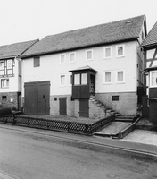 Als wichtiger Teil der entlang einer einheitlichen Linie angelegten, traufständigen Bebauung fungierendes Einhaus, das durch seine weitgehend unveränderte Struktur besondere Beachtung erlangt. Über dem hohen Werksteinsockel ist ein konstruktives Fachwerk in Rähmbauweise mit konvergierenden Streben errichtet, die Fassade ist heute weitgehend mit ungewöhnlich colorierten Holzschindeln verkleidet. Erhalten hat sich die Haustür in Rahmenfüllungskonstruktion aus der Bauzeit. Gut ablesbar die Funktionsaufteilung mit dem Stall unter und neben dem Wohnbereich sowie der Scheune. Wichtiger Beleg für die systematische Bebauung des Kirchhainer Weges im letzten Drittel des 19. Jhs.