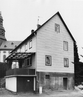 Mit dem Giebel an die Südostseite des Kirchhofes angegliedertes Wohnhaus auf hohem Werksteinsockel, der durch Ziegelaufmauerung nachträglich noch einmal erhöht ist. Die original erhaltene, durch Schnitzwerk verzierte Haustür mit senkrecht vorgelagerter Sandsteintreppe ist datiert 1853; dies könnte auch die Bauzeit des komplett durch Platten verkleideten Fachwerkrähmbaus sein. Das Gebäude nimmt durch seine Lage an der Einmündung der Hofstraße eine wichtige Stellung im Straßenbild ein, das allerdings durch den Garagenanbau gestört ist.
