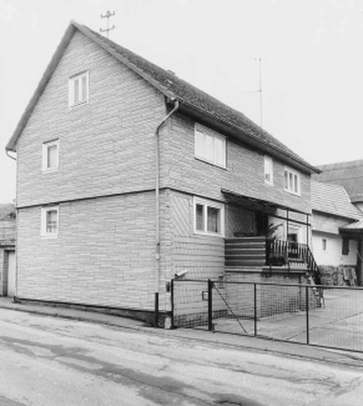 Vollständig plattenverkleidetes, giebelständiges Wohnhaus mit bis in den Keller reichendem Fachwerk und umlaufendem Geschoßversatz. Der Bau dürfte Mannverstrebungen besitzen und ist ins 18. Jh. zu datieren. Die Scheune im Hintergrund mit Jahreszahl 1839.