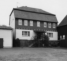 Dreiseithof mit weit zurückliegendem, traufständigem Wohnhaus, mit seinem Walmmansarddach und die siebenachsige Gliederung von repräsentativer Wirkung. Rähmbau über hohem Werksteinsockel und massiv erneuertem Erdgeschoß, zweiläufige Treppe, die Fassade z.T. mit Platten bzw. Holzschindeln verkleidet. Ebenso wie bei den Wirtschaftsgebäuden liegt die Bauzeit im letzten Drittel des 19. Jhs.